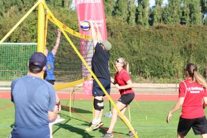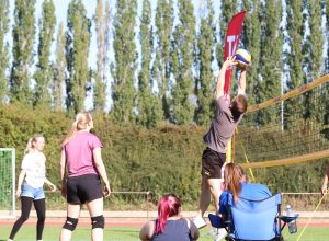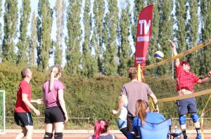 Wir Volleyballer/innen feierten gemeinsam mit Freunden und Familie in der Josef-Balduin-Arena unser Sommerfest. Zum Programm gehörte ein Spaß-Turnier mit unserer mobilen Volleyball-Netzanlage. Die Teams wurden zusammengewürfelt und mit selbst ausgedachten Namen, Turtles Allstars, MeLaRiIn, Volleypower und Haikyuus, traten wir gegeneinander an. Bei der Siegerehrung gab es neben einer Urkunde ein paar Leckereien und einen Volleyball Bedburg Button. Für Abwechslung sorgten kleine Funspiele, ein Maltisch für unsere Kleinsten und gute Musik. Das von den Mitgliedern gespendete Buffet, das leckere Grillgut und unser traditioneller Getränkepool rundeten den Tag ab. Die neuen Faltpavillions haben uns die Vorbereitungen sehr erleichtert und Beachflags mit unserem Vereinslogo zeigten den Neugierigen wer wir sind. Es war ein sehr schöner Tag. Unser 5. Sommerfest feiern wir nächstes Jahr auf unserem eigenen Beachvolleyballplatz! Wir freuen uns drauf!