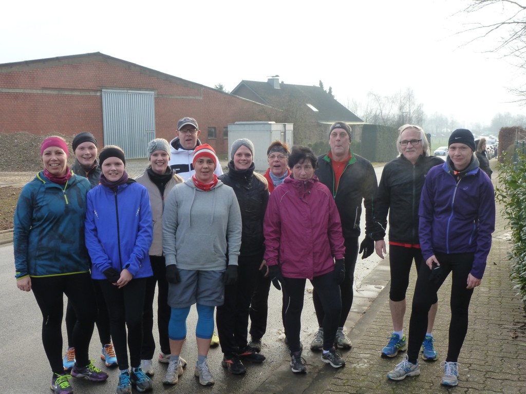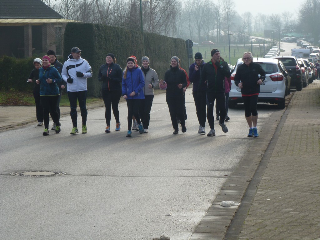 Nein, das sind nicht die Gewinnzahlen einer Lotterie. Das sind die Fakten von 10 Wochen harten Trainings bei Wind und Wetter im Dunkeln, im Hellen, durch Bedburg, um den Kasterer See, über die Kasterer Höhe zum Golfplatz und wo immer uns die länger werdenden Trainingseinheiten hinführten. 5,35 Kilometer in 41:26 Minuten mit einem Schnitt von 7:45 min/km legten die Teilnehmer des 8. Kurs „Laufen ohne zu Schnaufen“ am letzten Tag des Jahres 2014 ohne Gehpause zurück. Seit genau 10 Jahren bietet unser Lauftreff diesen Kurs an und diesmal passte es haargenau, den Abschlusslauf in den 10. Silvester-Brezel-Lauf der Turnvereinigung zu integrieren. Und wie schon bei allen Abschlussläufen in den Jahren zuvor war allen nach ca. 25 gelaufenen Minuten klar: das klappt und wir werden unser Ziel, 40 Minutem am Stück zu laufen, erreichen.
