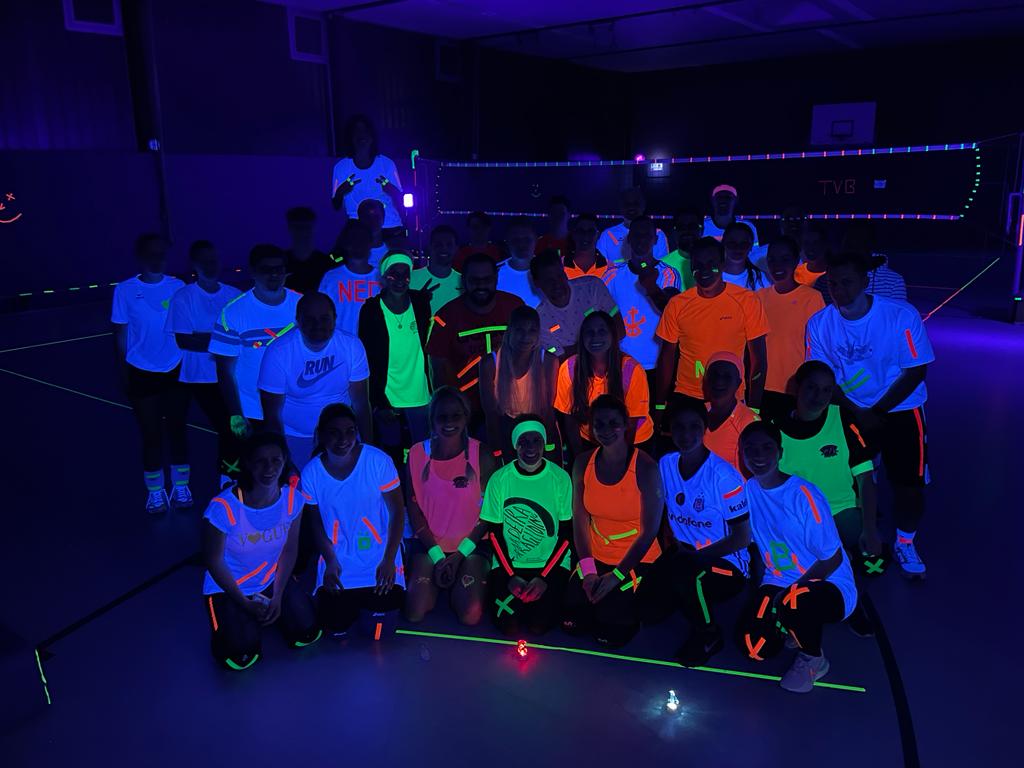 Für die Volleyballabteilung der Turnvereinigung Bedburg startete das Jahr 2024 mit dem magischen Schwarzlicht-Volleyball-Turnier. In der in Schwarzlicht getauchten Kirdorfer Sporthalle erlebten 20 Jugendliche am späten Nachmittag den Zauber von leuchtenden Volleybällen und einem farbenfrohen Volleyballspielfeld. Mit leuchtender Kleidung, bunten Accessoires, Bodypainting und Tattoos brachten sich alle Teilnehmer: innen zum Leuchten. Abends begeisterte dieses besondere Event 40 Erwachsene – ein absoluter Teilnehmerrekord aus derzeit 5 aktiven Gruppen: Fireballs, Mixed-Baby, Damen, junge Erwachsene und Beach. Aufgrund der wachsenden Beliebtheit dieses Turniers, bei dem eine Menge Freude in der Luft liegt, wird überlegt, das Event im Jahre 2025 in die größere Dreifachhalle zu verlegen.
