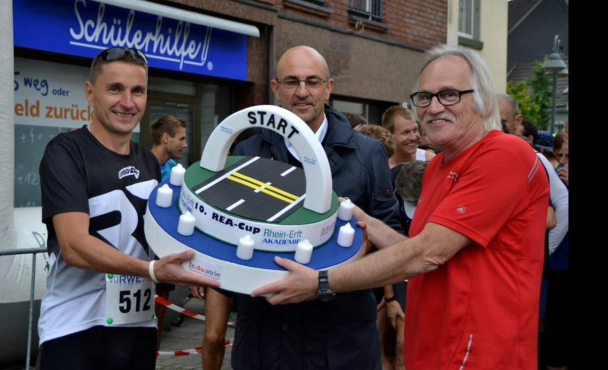 Die Jubiläumsserie ist gestartet – wie immer mit dem Donatuslauf in Erftstadt. Und wie es sich für einen runden Geburtstag gehört, überreichte Michael Maier vor dem Start des Hauptlaufes eine Geburtstagstorte an die Organisatoren der LG Donatus Erftstadt. Bei strahlendem Frühlingswetter wurde das imposante Teilnehmerfeld mit über 300 Teilnehmern auf die Runde durch due Ville geschickt. Und bereits nach 32:26 Minuten war der Sieger Maciek Mierezcko wieder im Ziel an der Waldorfschule angekommen. Unsere beiden Teilnehmer Guido Wagner in 57:10 Minuten und Dietmar Heitz in 63:36 Minuten waren mit ihren Zeiten zufrieden und froh, die ersten Punkte ergattert zu haben. Überragend wieder einmal Peter Werth, der die Altersklasse M70 in tollen 46:45 Minuten überlegen gewann. Und auch sein Enkel Moritz stellte mit seinem Sieg in der MJ U8 über 1200 Meter sein Talent genauso wie die übrigen 9 Schülerinnen und Schüler der Turnvereinigung Bedburg unter Beweis.Alle Ergebnisse des Donatuslaufes gibt es hier.no images were found |
